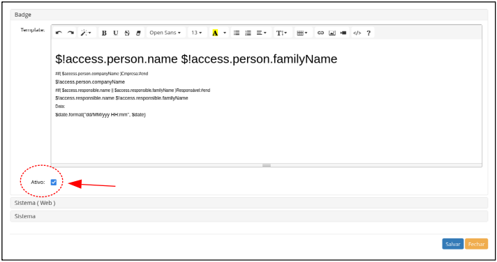 Nesta etapa é necessário marcar a caixa de opção como Ativo: ☑️