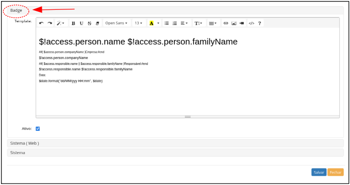 O Badge é uma funcionalidade de impressão de etiqueta/crachá usando informações do acesso e pessoa vinculada. O layout e o conteúdo, podem ser personalizados por meio das funcionalidades de Parametrização disponíveis para usuários com Papel "SuperAdmin".
