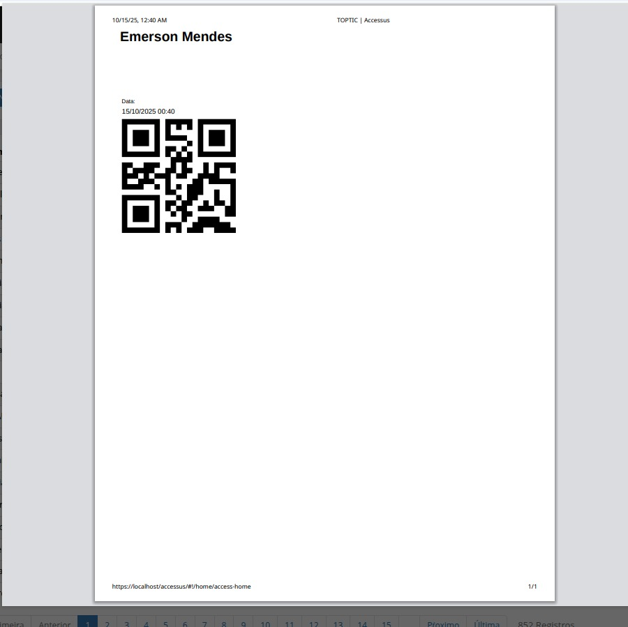 Ao salvar e imprimir o Badge, o QR Code será renderizado corretamente com os dados da credencial: