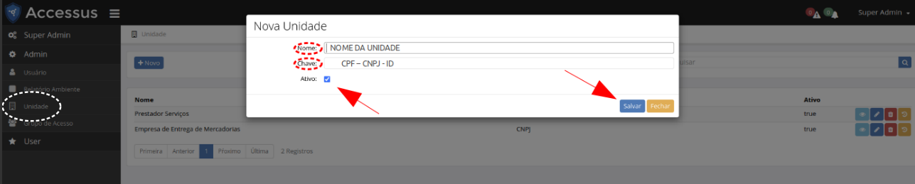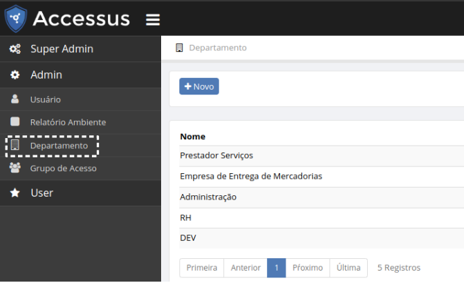 Visualização da label "Unidade" personalizada para "Departamento" no Accessus.