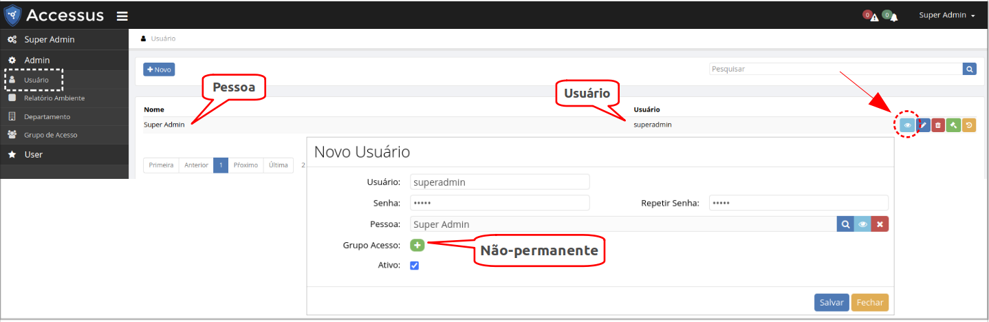 O Usuário Accessus está associado à Pessoa. Desta forma, note que existem itens importantes que merecem atenção ao cadastrar um Usuário.