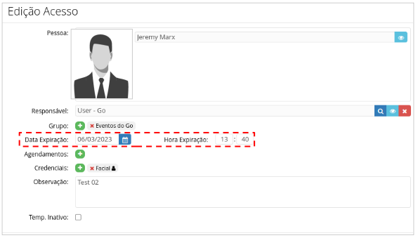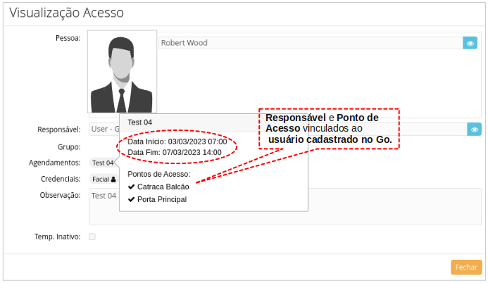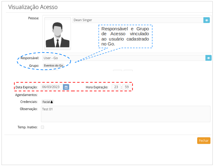 Quando a Data e a Hora Inicial do convite for menor ou igual a Data e a Hora Atual (vigente). O sistema Accessus utiliza os dados do usuário cadastrado no Go para vincular o Responsável e o Grupo de Acesso.Agendamento